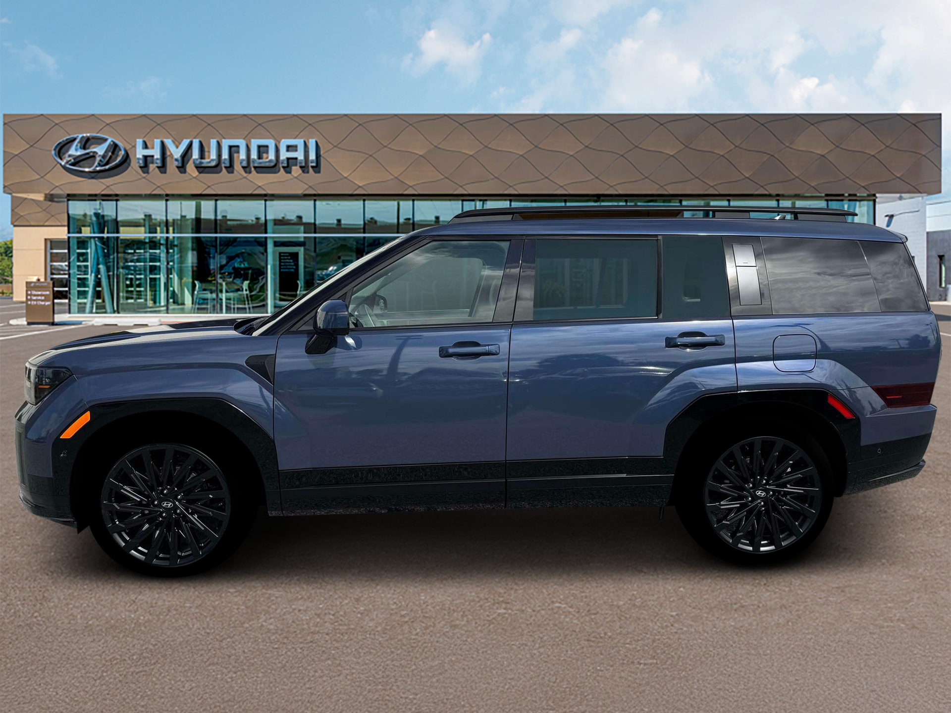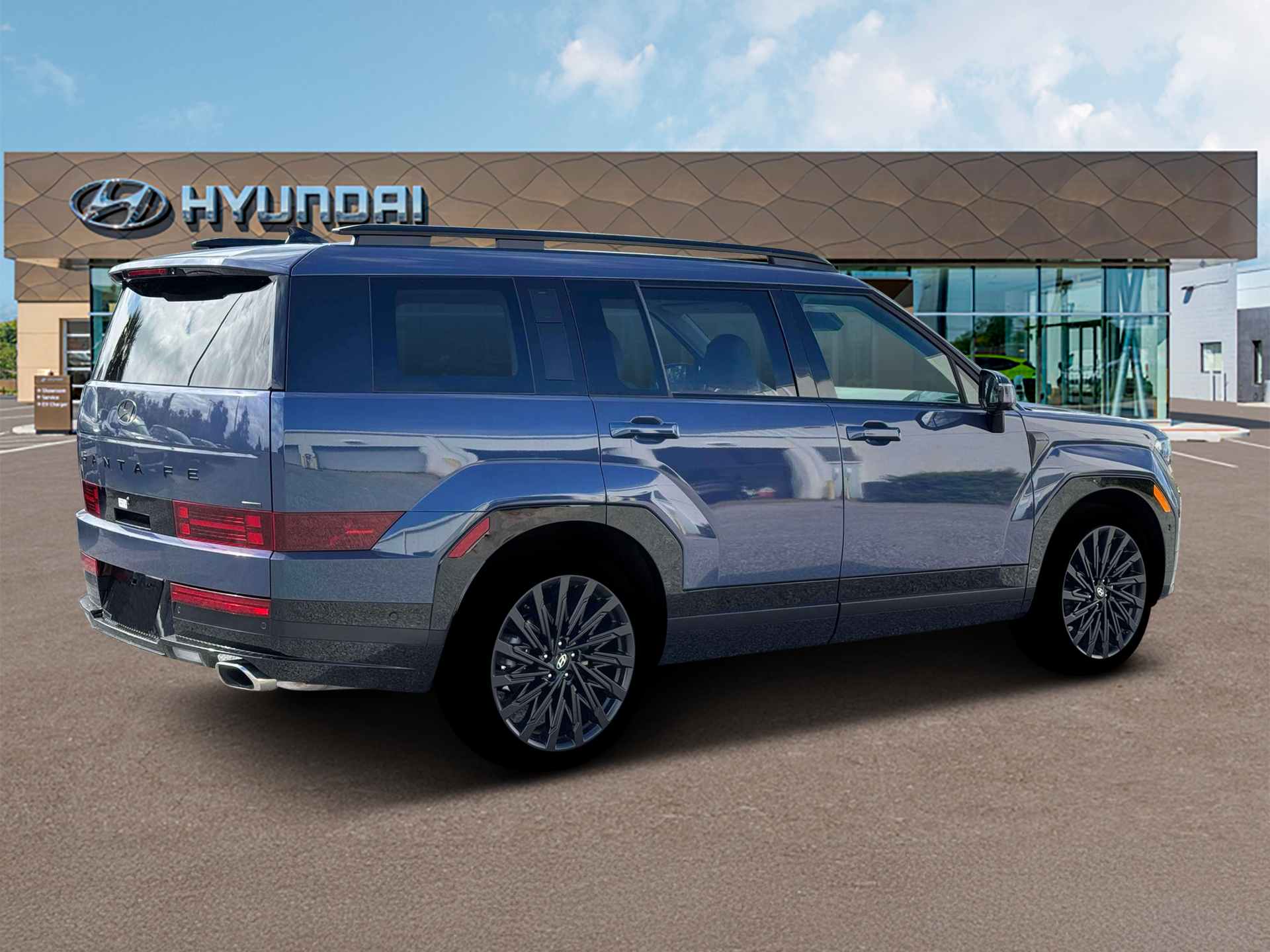 Atlantis Blue 2026 Hyundai Santa Fe Calligraphy AWD 8-Speed Automatic with SHIFTRONIC 2.5L I4 AWD, Black Leather.
