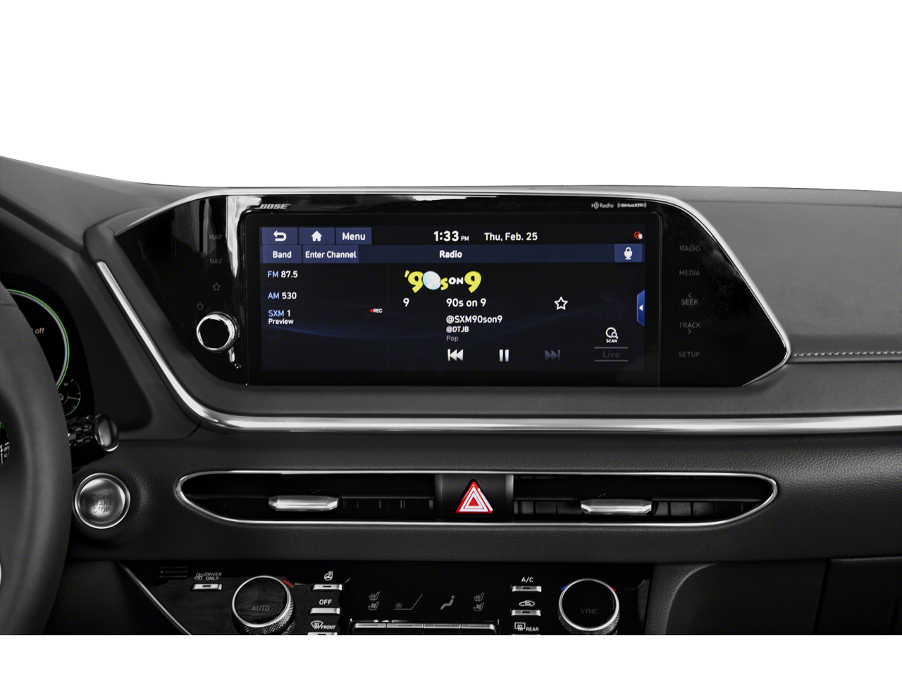 - Radio: AM/FM/SiriusXM/MP3 w/Navigation -inc: 10.25" color touchscreen, Apple CarPlay, Android Auto, HD radio, Blue Link, smartphone integration, Bluetooth® hands-free phone steering audio controls and Bose premium audio w/12 speakers (1 center channel, 2 dash, 2 front tweeter, 4 door mounted, 2 rear mounted speakers + 1 rear mounted subwoofer)