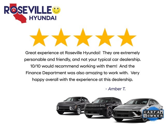 CARFAX One-Owner. 2.5L 4-Cylinder 16V DOHC, ABS brakes, Active Cruise Control, Alloy wheels, Electronic Stability Control, Front dual zone A/C, Heated door mirrors, Illuminated entry, Low tire pressure warning, Remote keyless entry, Traction control. Roseville Hyundai offers a large selection of pre-owned and certified pre-owned inventory at prices you can appreciate. Whether you are searching for a car, van, truck, SUV or crossover, we have the perfect vehicle for you. * Prices and payments do not include tax, tag, title, and other official fees. All pricing and details are believed to be accurate, but we do not warrant or guarantee such accuracy. Vehicle information is based off standard equipment and may vary from vehicle to vehicle. All specifications, prices and equipment are subject to change without notice. Call or email for complete details and information. While every effort has been made to ensure display of accurate data, the vehicle listings within this website may not reflect all accurate vehicle items. Accessories and color may vary. The vehicle photo displayed may be an example only. Vehicle Photos may not match exact vehicles. All inventory listed is subject to prior sale. Please confirm vehicle price and details with Dealership.